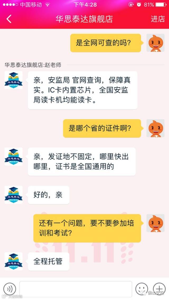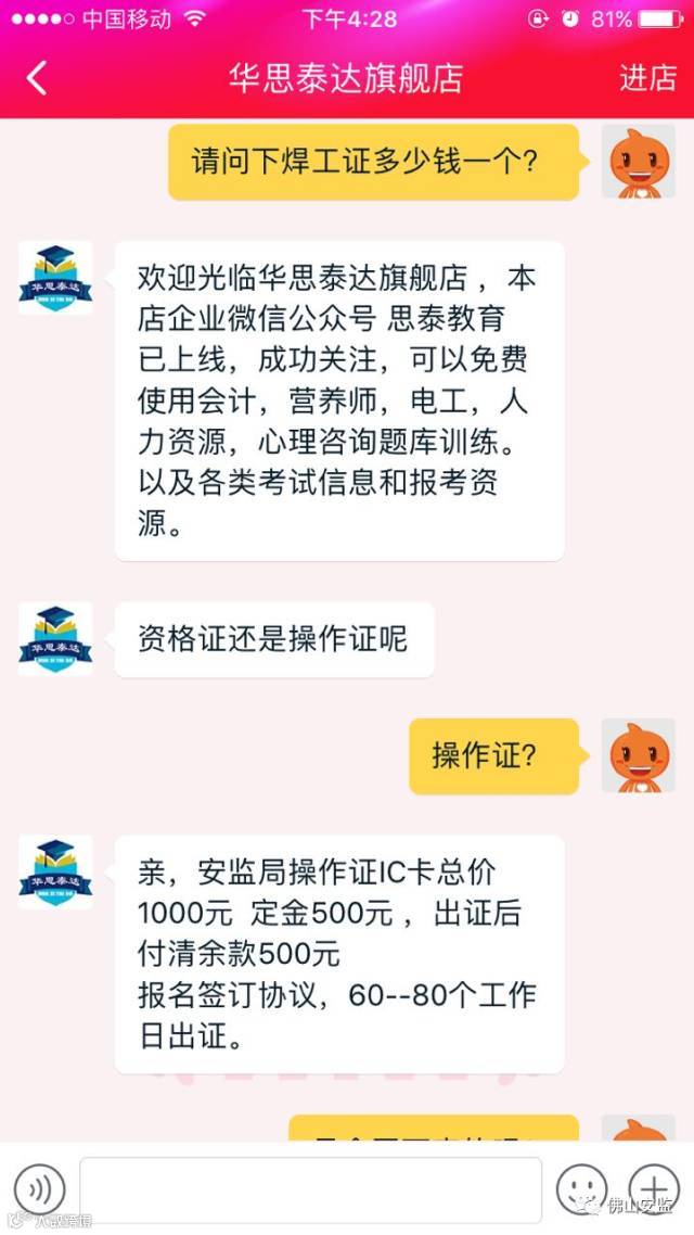 请各位拿出手机打开“淘宝”,输入“特种作业操作证”