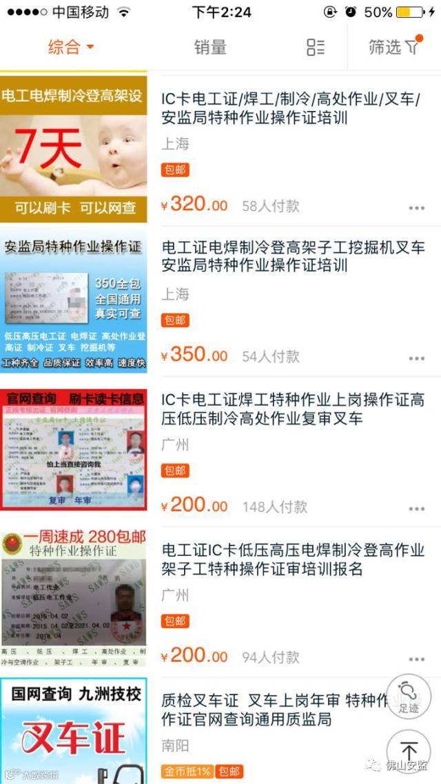 安监哥不得不感叹网络的强大,连由安监部门核发的“特种作业操作证”都可以随意贩卖。