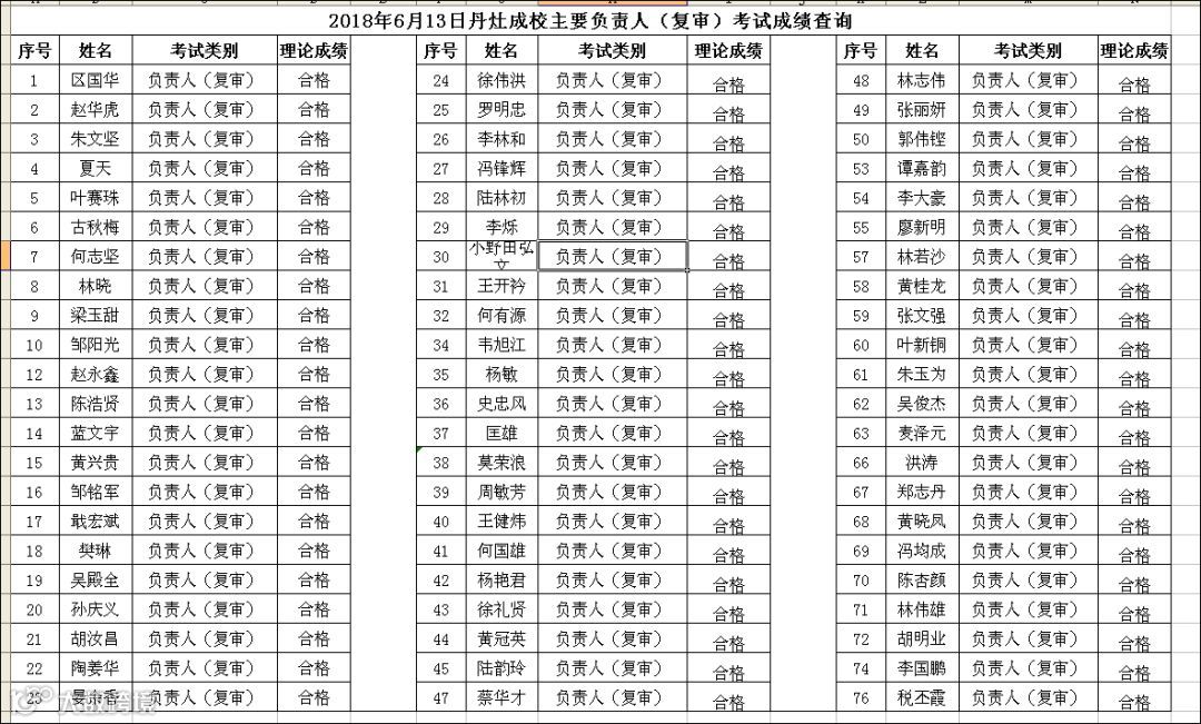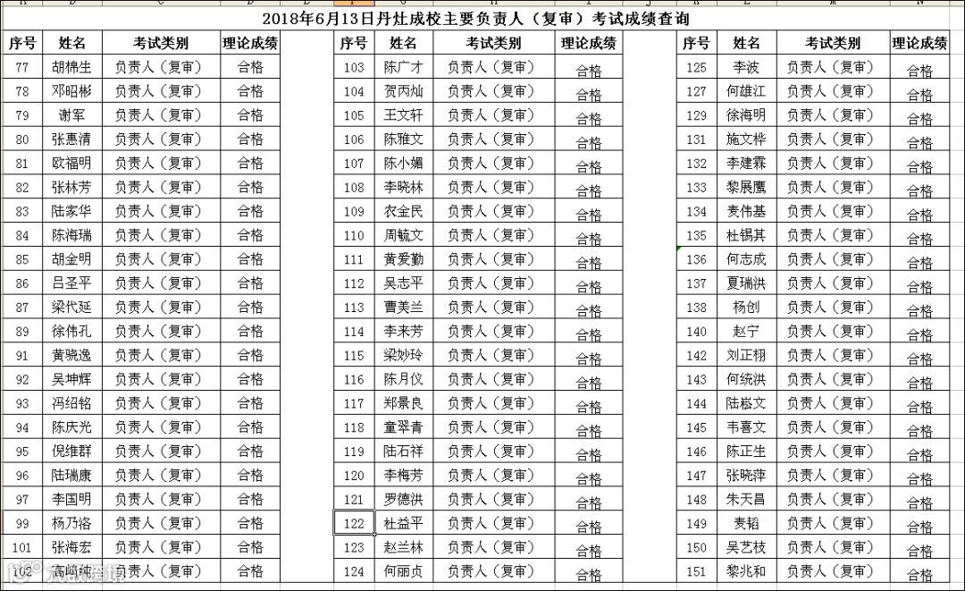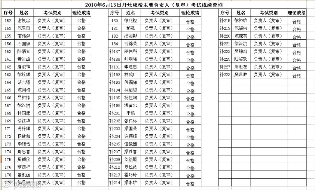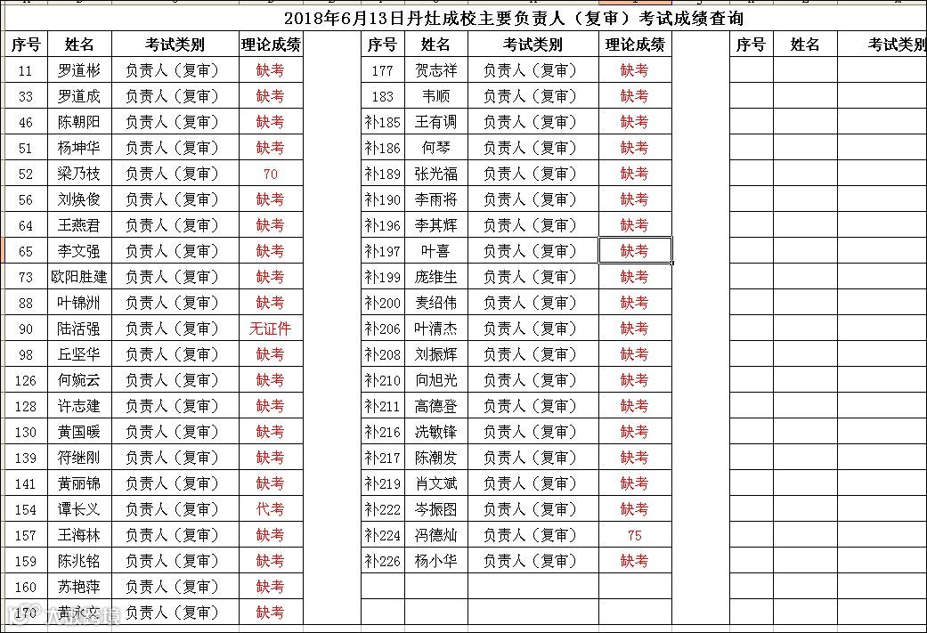 导读:2018.06.13丹灶成校主要负责人(复审)考试成绩查询