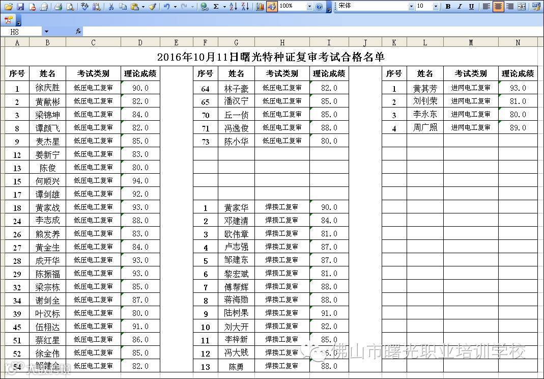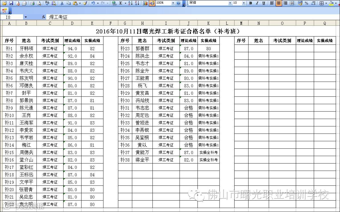 10.11早上焊工考证 + 10.11下午特种复审(合格名单) 佛山市曙安安全技术服务公司