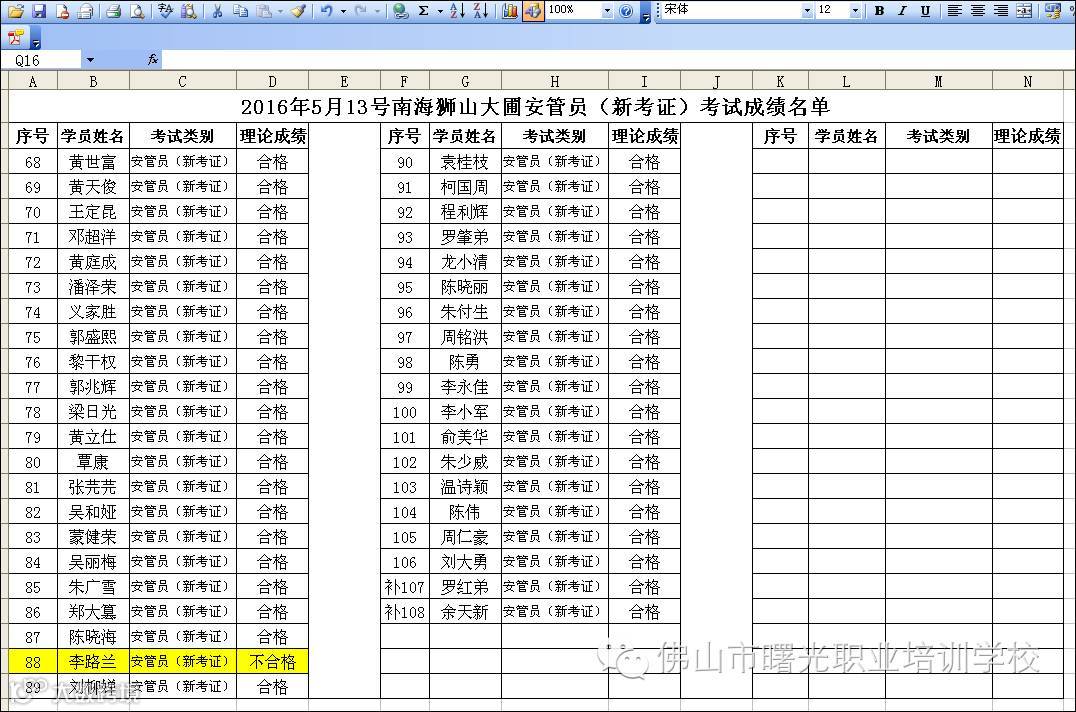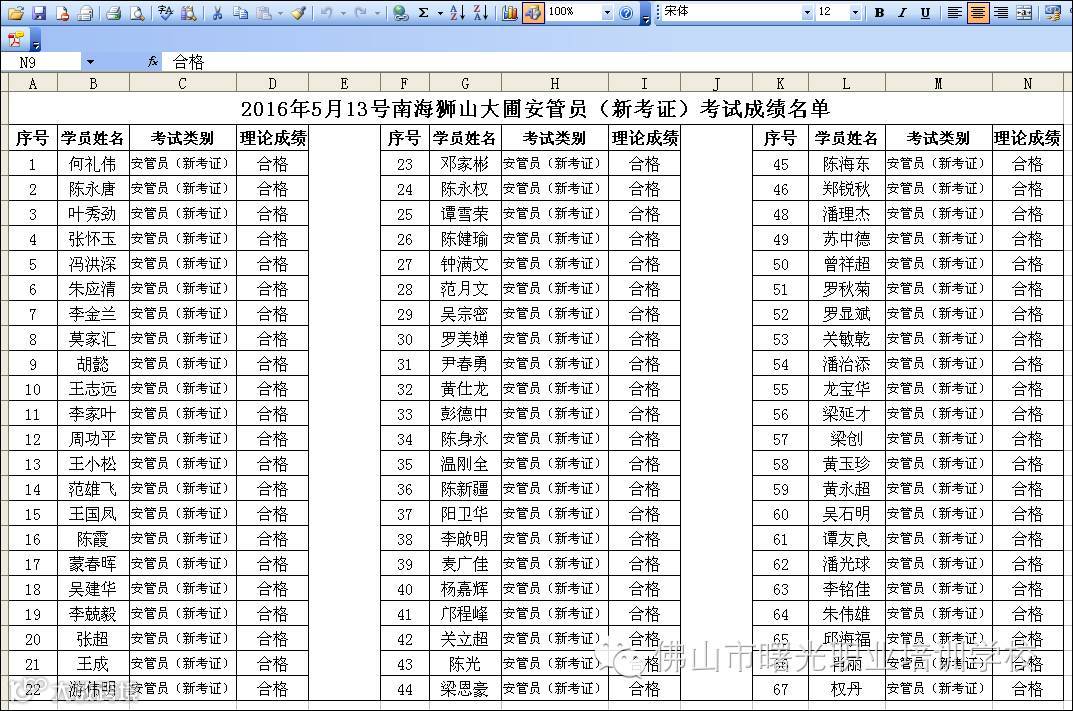 2016.5.13南海狮山大圃安管员新考证成绩名单