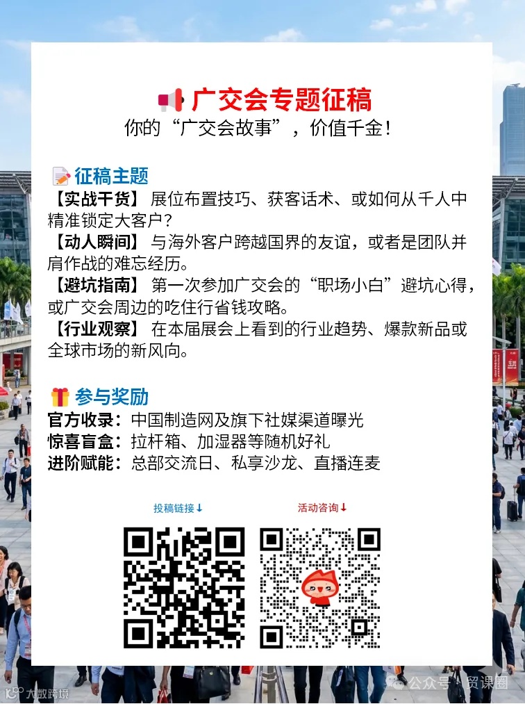 数据是宏观的,但体感是个人的。是“客似云来”忙到没空喝水,还是“当场掏卡”的成交震撼了你?为了还原最真实的一线战况,我们发起了一份《2026广交会调查》,诚邀你投下最真实的一票: