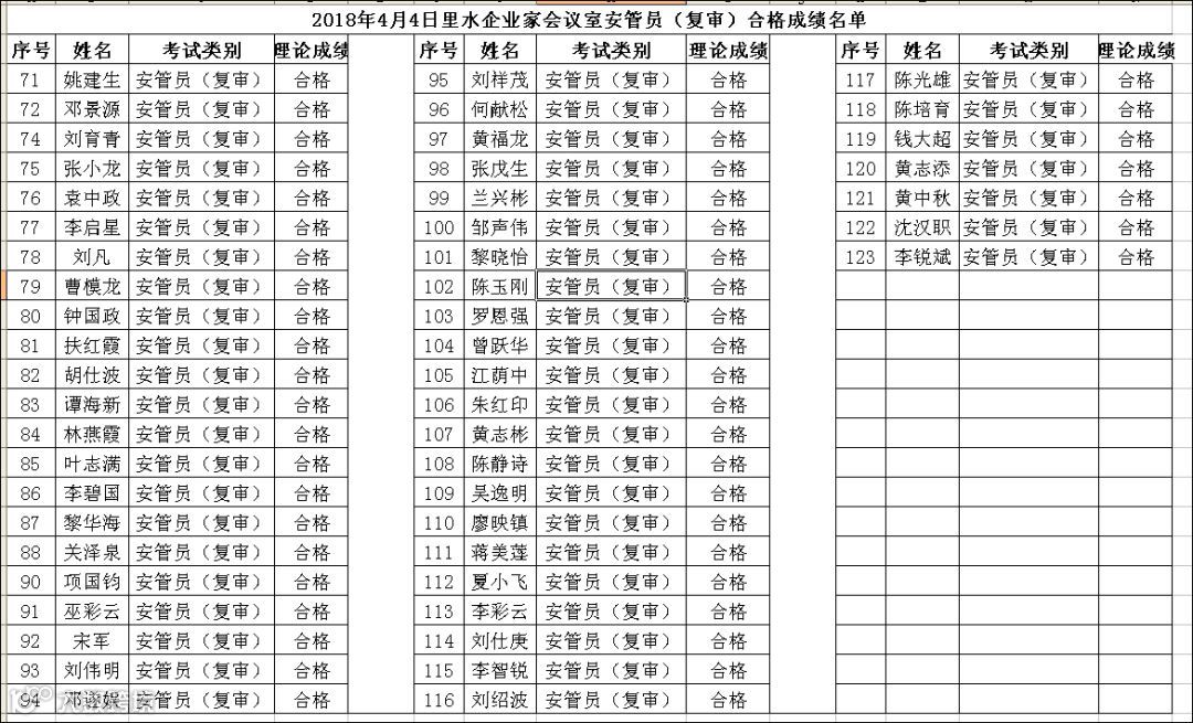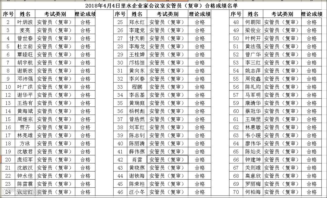 2018.04.04里水企业家安管员(复审)考试合格名单