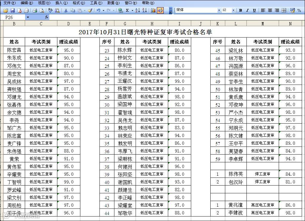 2017年10月11日+10月31日曙光特种上岗证(复审)合格名单 佛山市曙安安全技术服务公司