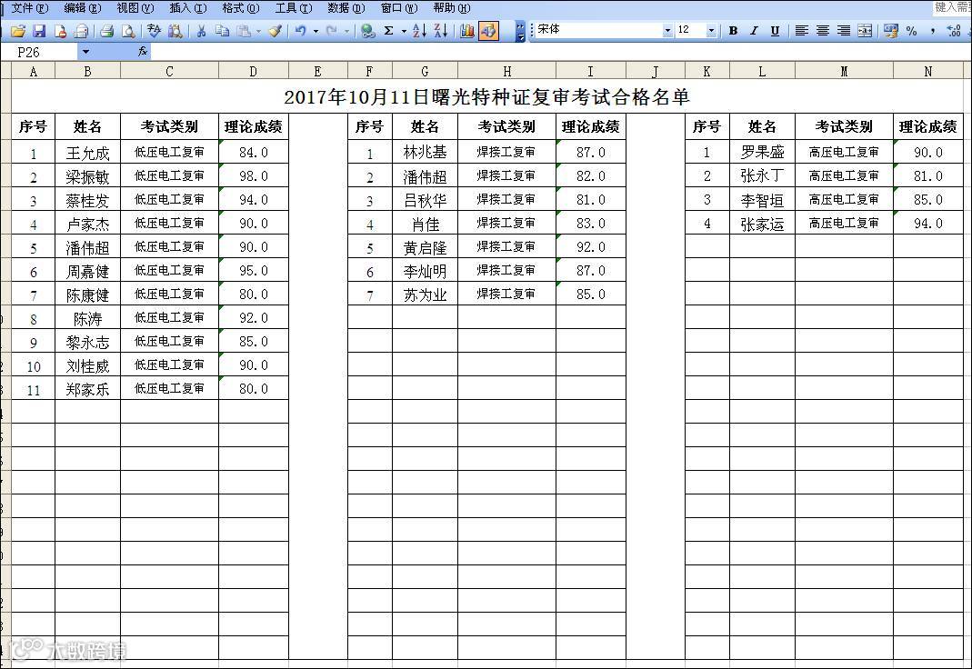 2017年10月11日+10月31日曙光特种上岗证(复审)合格名单