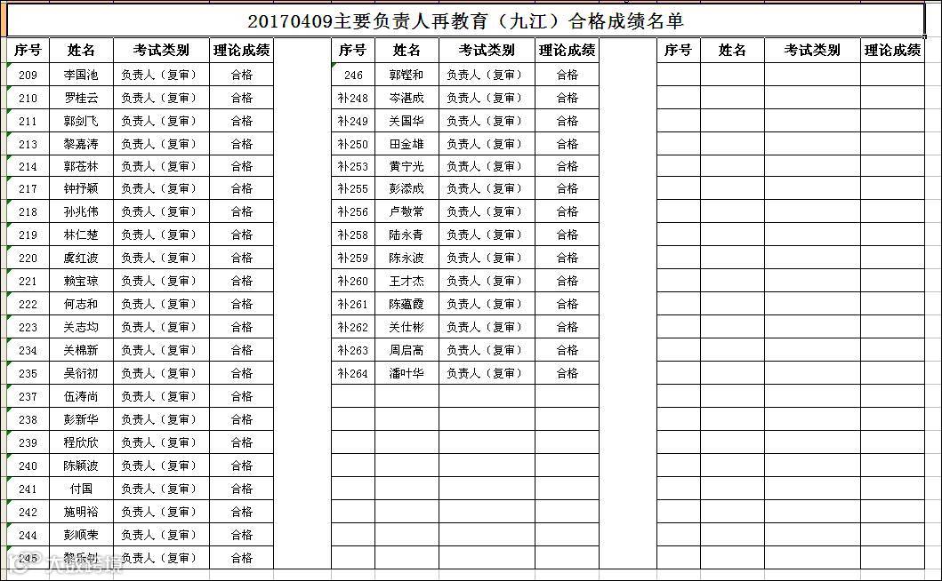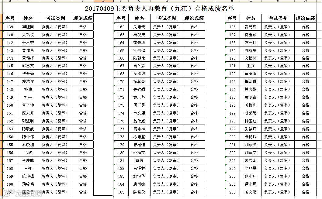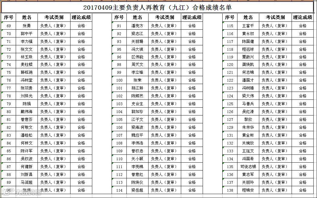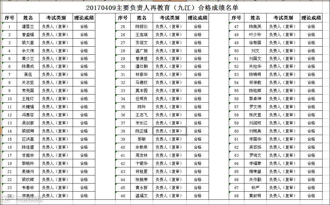 2017.04.09九江政府中心会场主要负责人(复审)合格名单