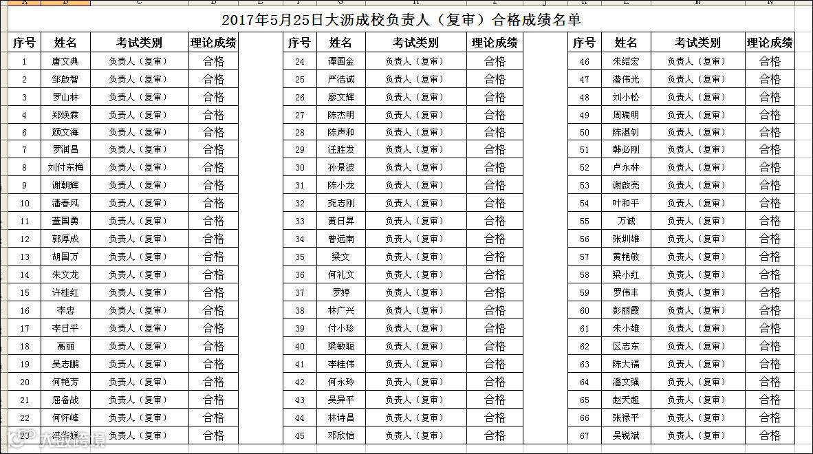 2017.05.25大沥成校主要负责人(复审)合格名单