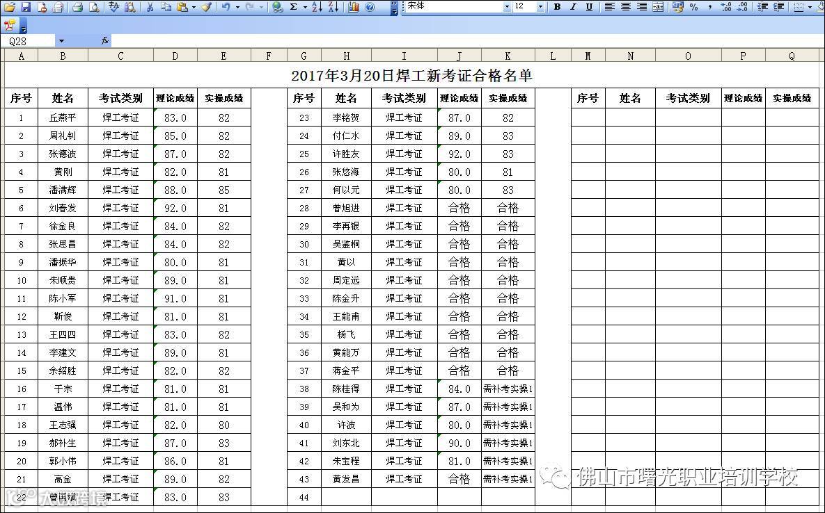 2017.3.20:焊工新考证合格名单 佛山市曙安安全技术服务公司