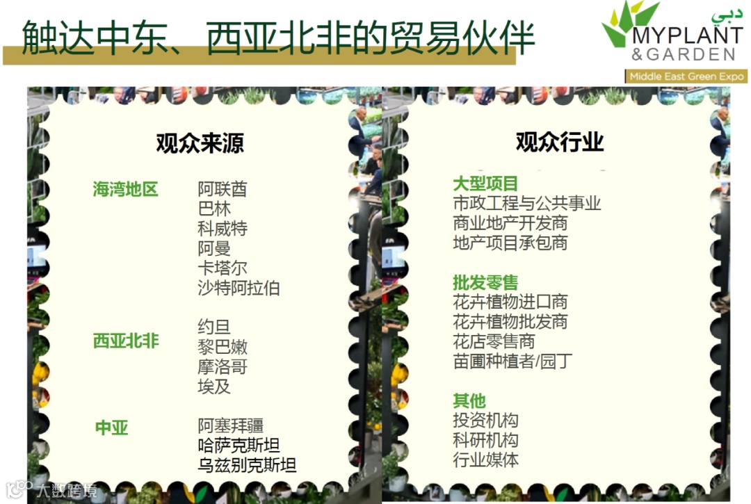 对于全球花卉与园艺产业而言,阿联酋已成为进入中东及周边广阔市场的战略门户。由意大利展览集团IEG及其子公司VGROUPSRL主办的Myplant & Garden Middle East Green Expo 中东花卉、植物与园林景观展览会,依托其意大利母展 Myplant & Garden International Green Expo 十余年的深厚积淀,紧抓未来十年海湾合作委员会国家及周边地区能源转型与绿色发展的时代机遇,以迪拜为基地,辐射整个中东,助力全球花卉、植物及园林景观企业拓展中东市场,共同探寻“沙漠绿洲”中蕴藏的无限商机。