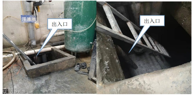 事故浮渣池长6米、宽3米、高3米,位于地面以下,左上角留有1米见方出入口,事发时池底存有0.3米深污泥;浮渣池内设有1台污泥潜水泵。