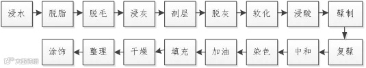 皮革鞣制主要包括鞣前准备、鞣制、鞣后湿加工、干燥和整饰四大工段。由于鞣前准备、鞣制和鞣后湿加工工段都是在水溶液中进行,这三大工段所有的工序称为湿加工操作,干燥和整饰操作基本在干燥状态进行,称为干加工操作。