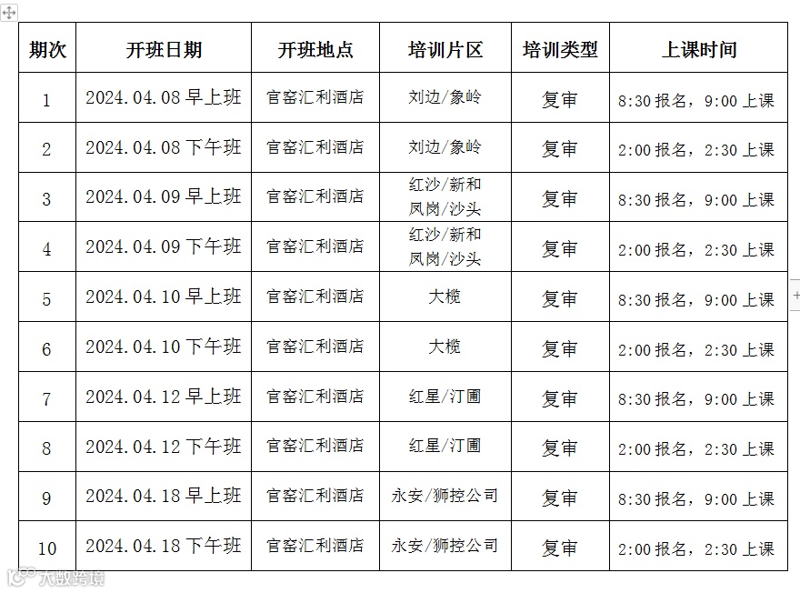 2、早上【复审】班:08:30开始报名,09:00开始上课,只需上课共0.5天。