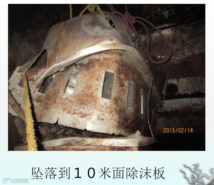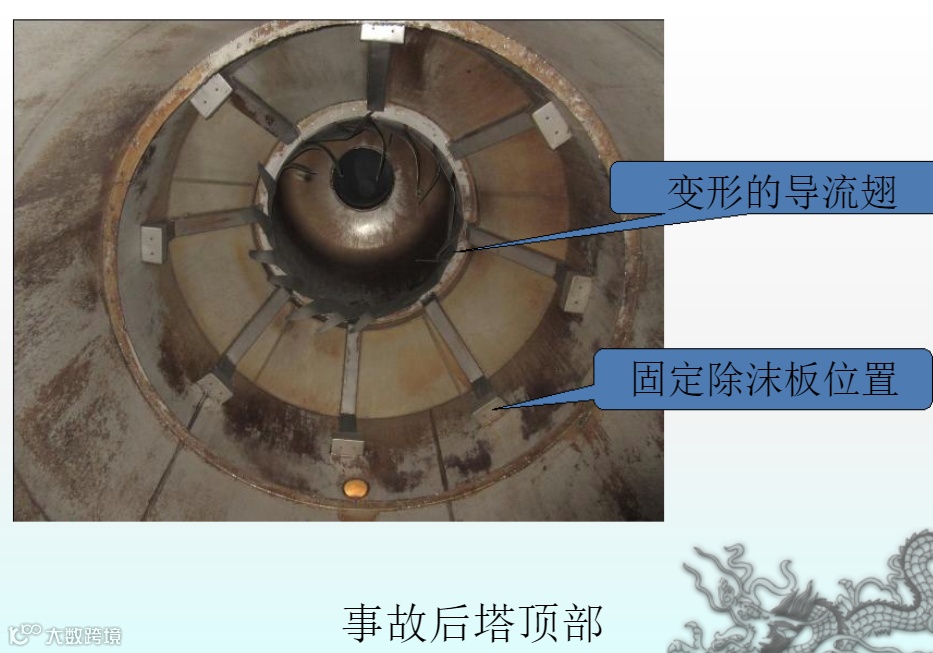 检修作业时,酒精车间对醪塔整体蒸汽吹扫置换不彻底,没有彻底隔绝与醪塔相连的工艺设施,残余酒精蒸汽或醪液发酵生成的沼气在醪塔内与空气形成爆炸性混合物,检修人员使用非防爆工具拆卸并递送塔板,工具与塔板、塔板之间或塔板与塔壁发生碰撞产生火花,引起醪塔上部空间闪爆,导致醪塔顶部的除沫板坠落,砸伤20m平台上的作业人员并致坠落。