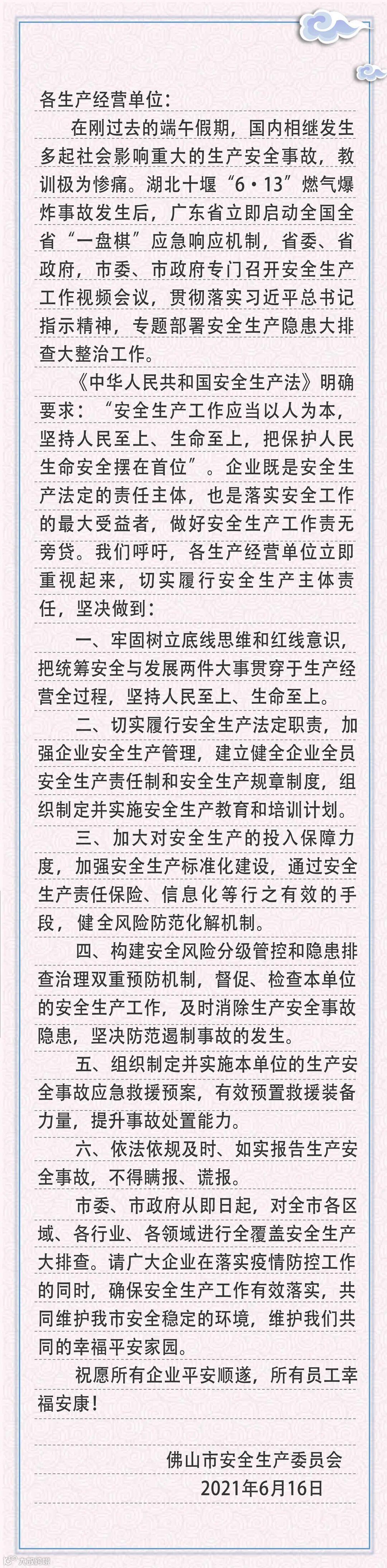 导读:致企业的一封信来源:“佛山应急管理”公众号,欢迎阅读原文!