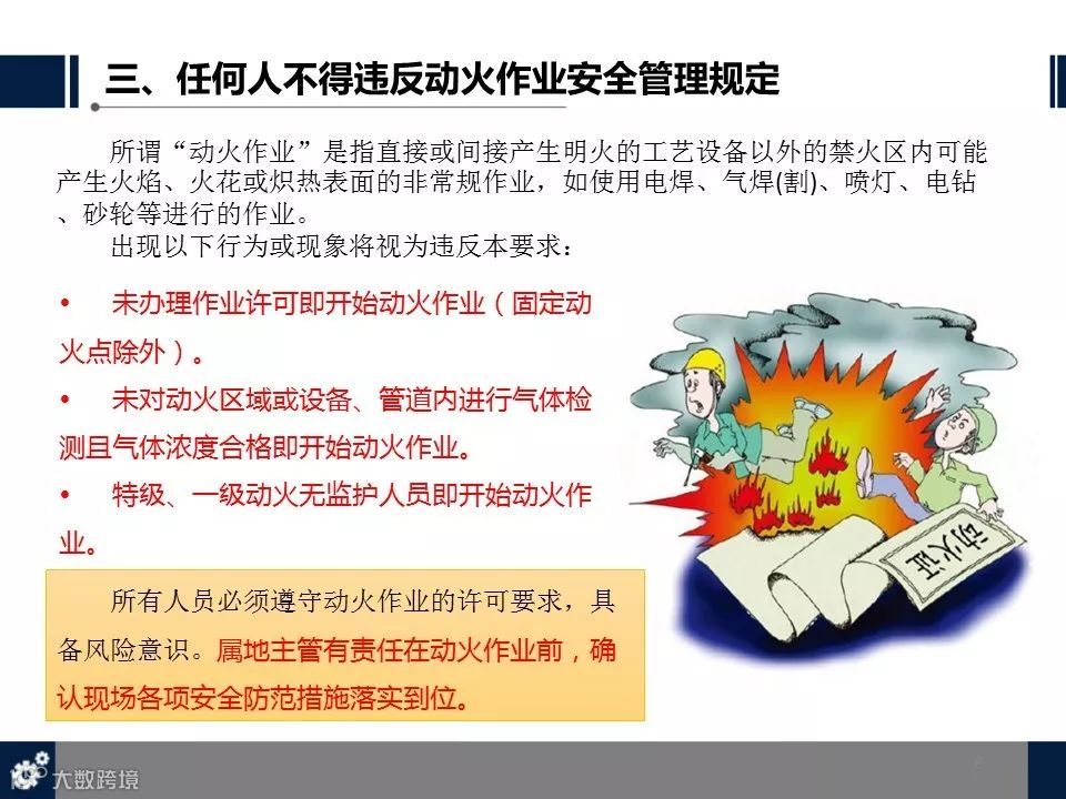 10、禁火区内未采取安全措施、未办理动火手续,不焊割。