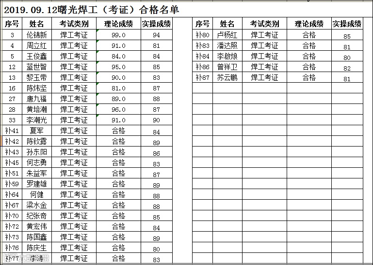 2019.09.12曙光焊工(考证)考试合格名单
