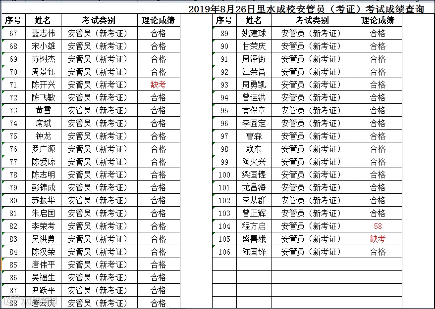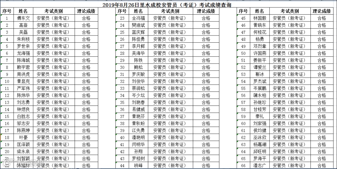 2019.08.26里水成校安管员(考证)考试成绩查询