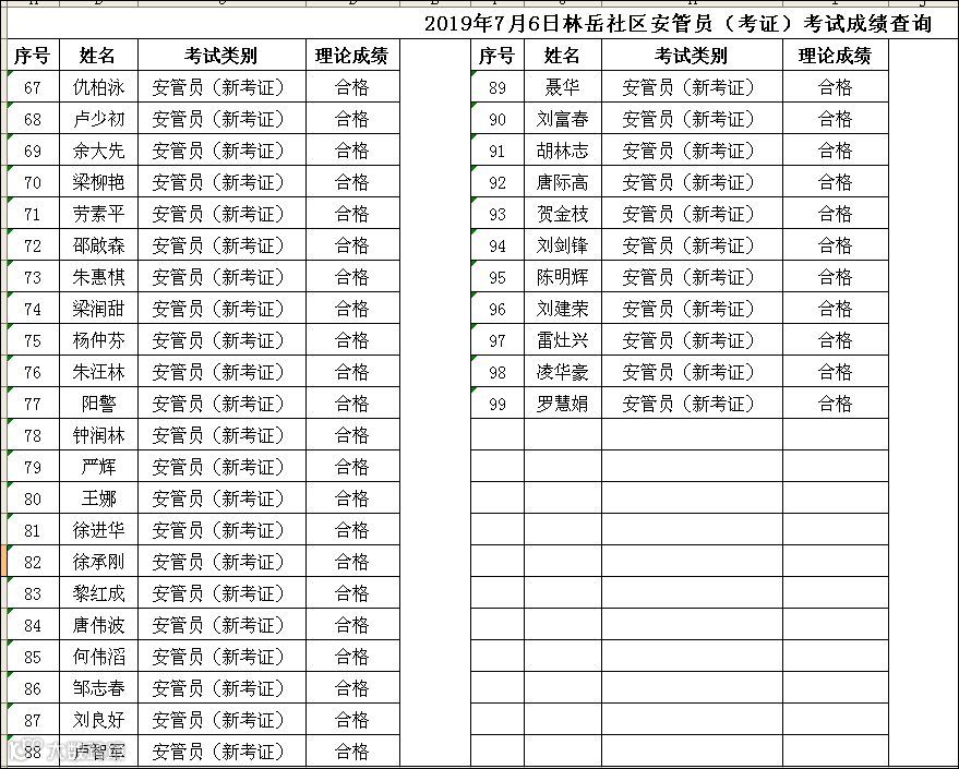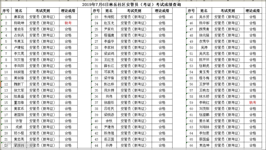 2019.07.06林岳社区安管员(考证)考试成绩查询