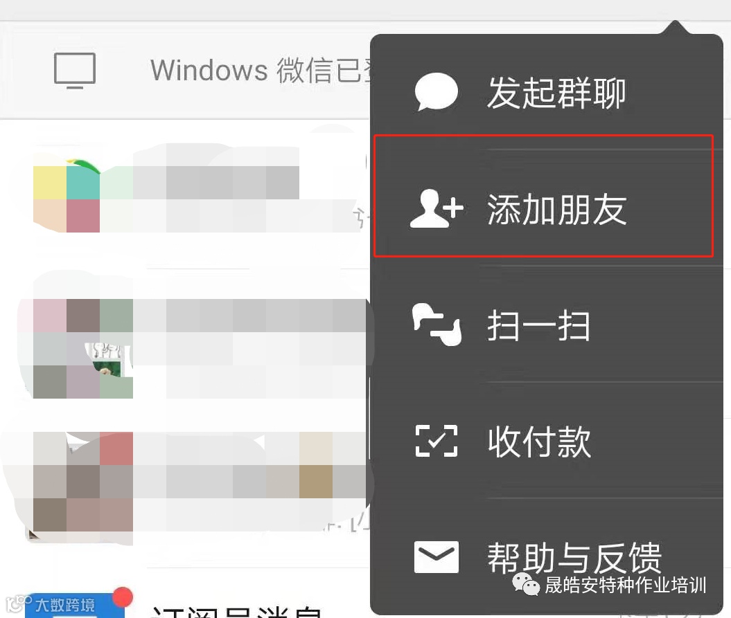 打开微信,点击微信右上方的“+”,选择添加朋友