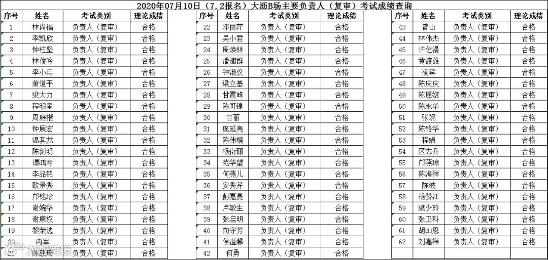 2020.07.10(7.2报名)大沥B场主要负责人(复审)考试成绩