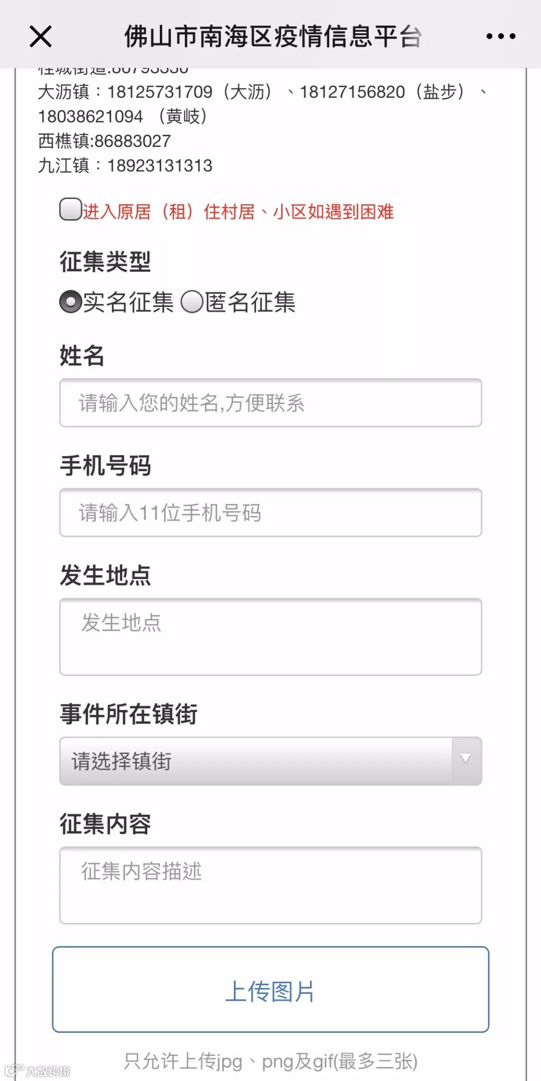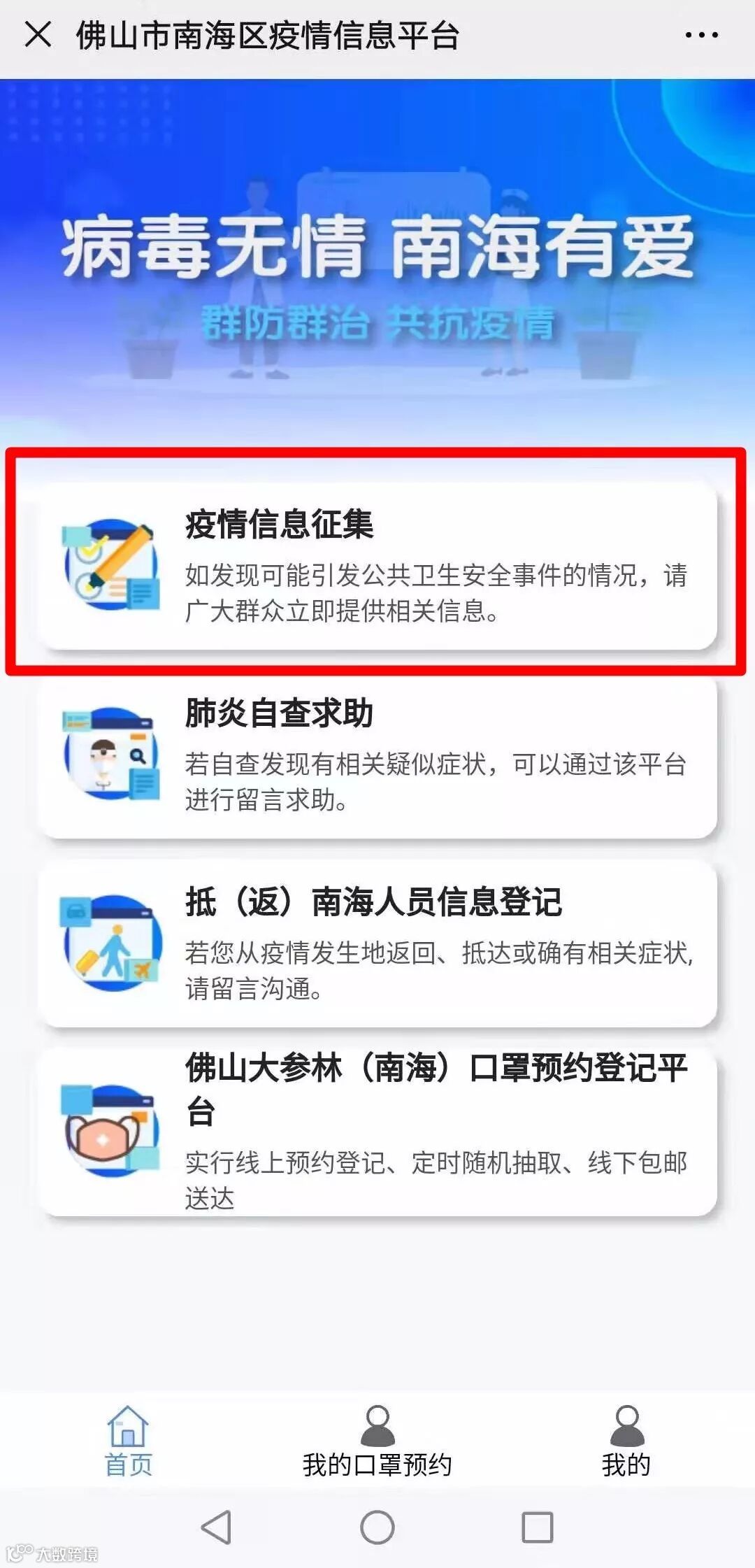 点击进入“疫情信息征集”