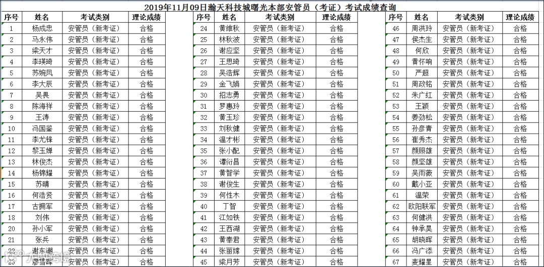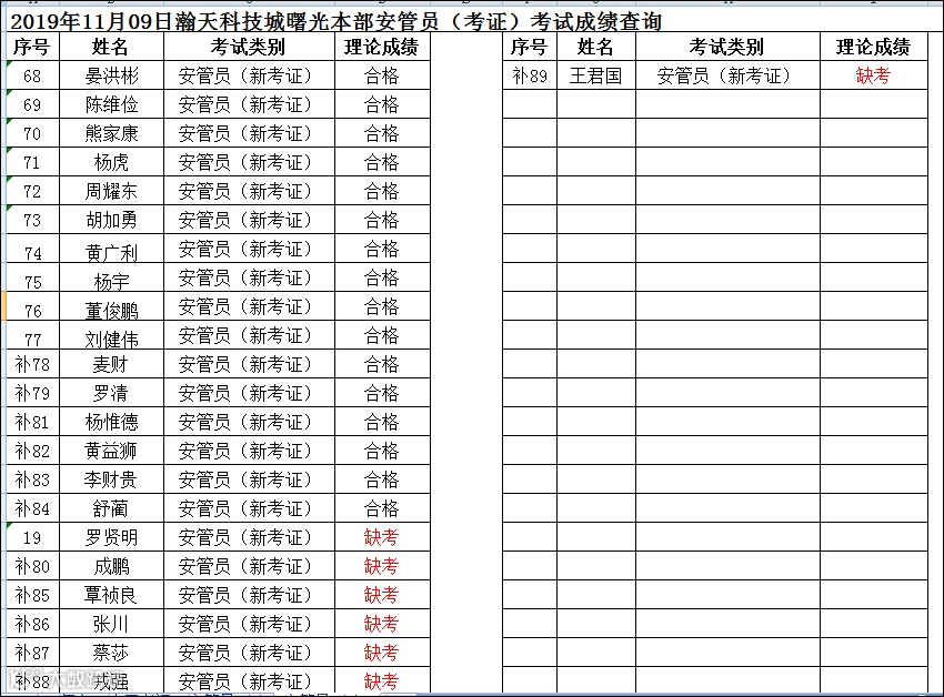 2019.11.09曙光本部安管员(考证)考试成绩查询