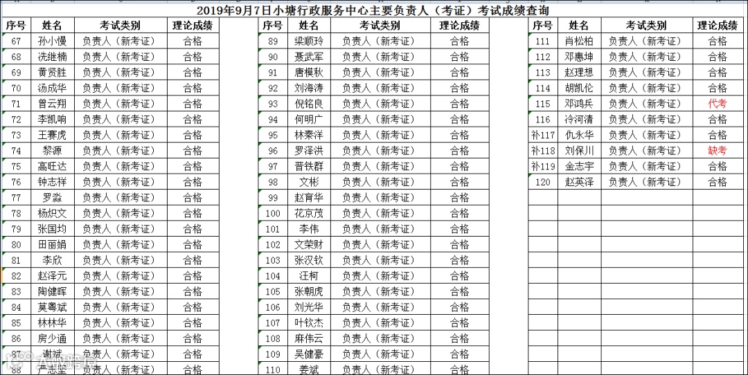 2019.09.07小塘行政服务中心主要负责人(考证)考试成绩查询