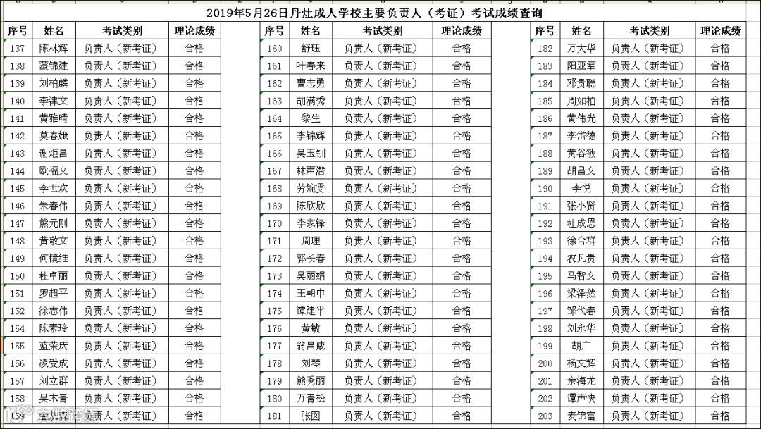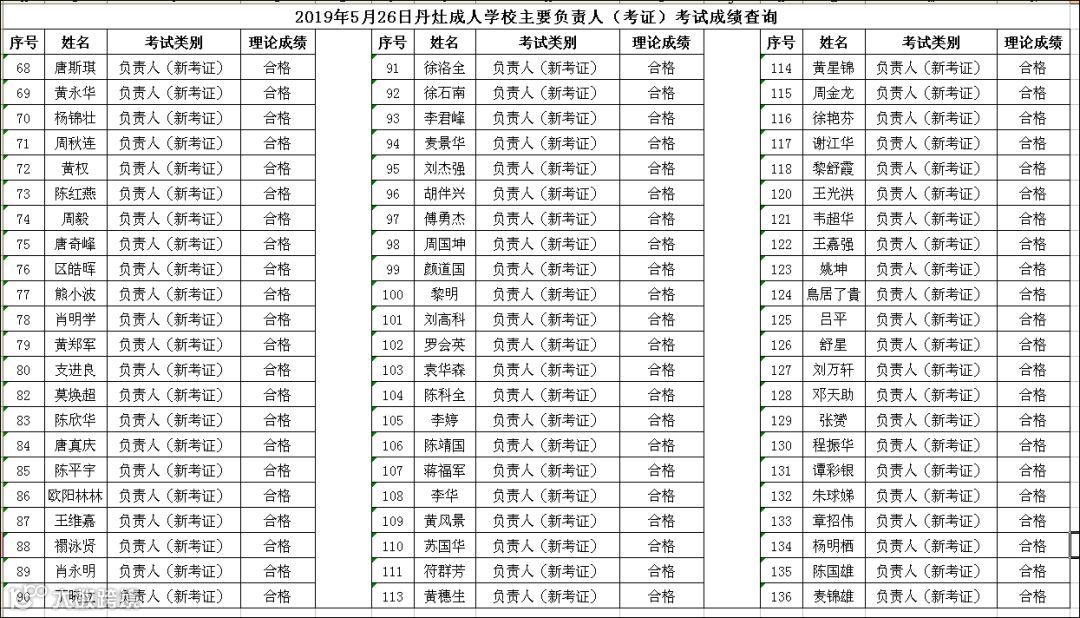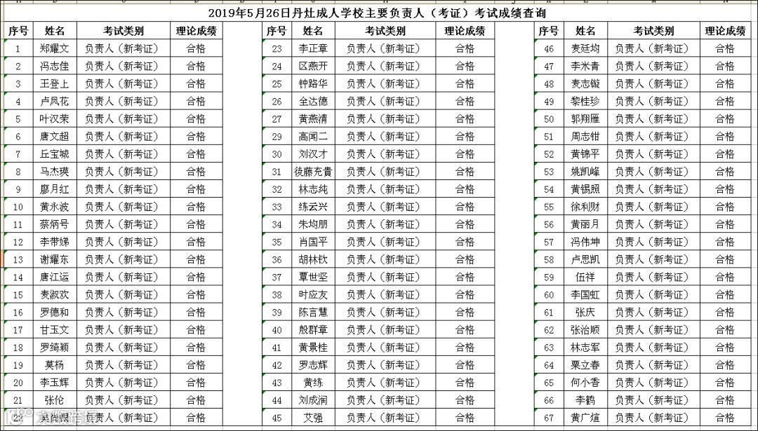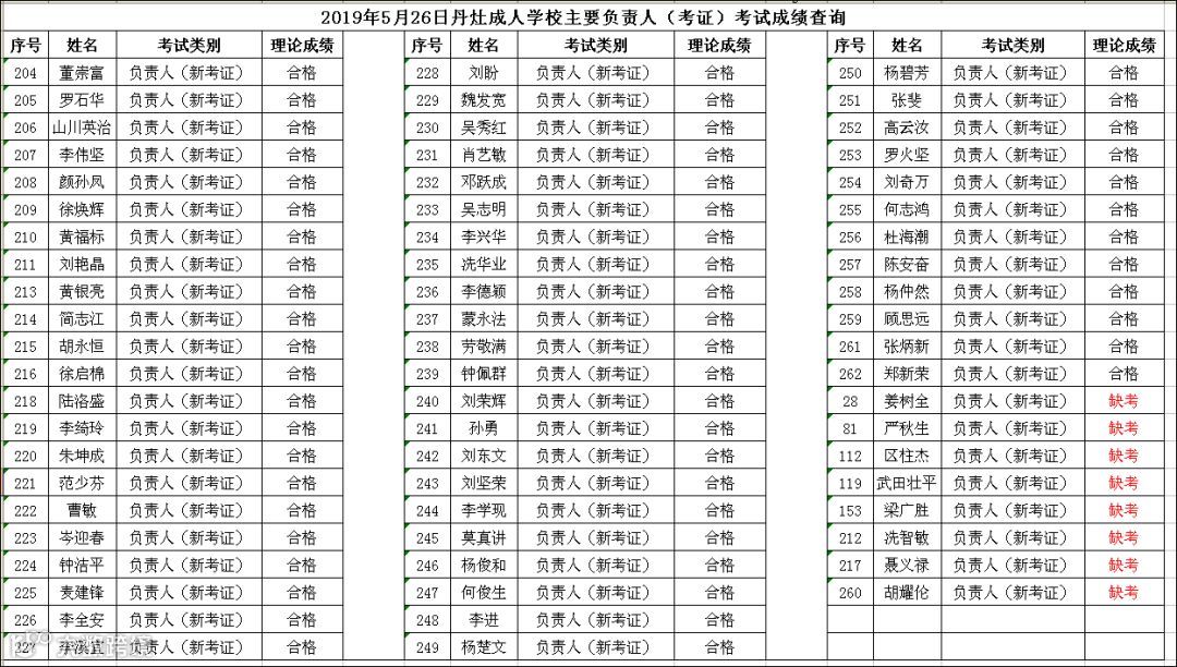 2019.05.26丹灶成人学校主要负责人(考证)考试成绩查询