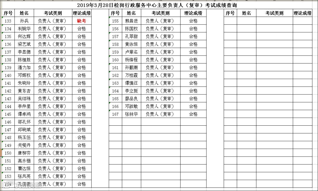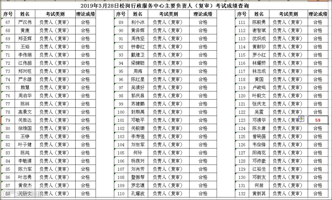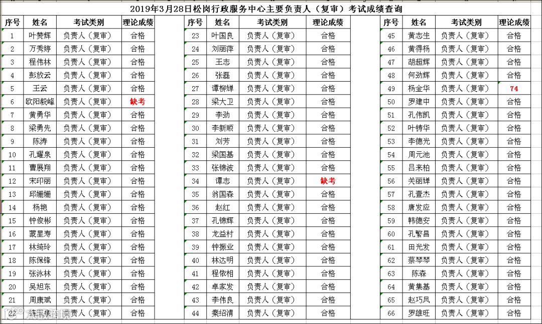 2019.03.28松岗行政服务中心主要负责人(复审)考试成绩查询