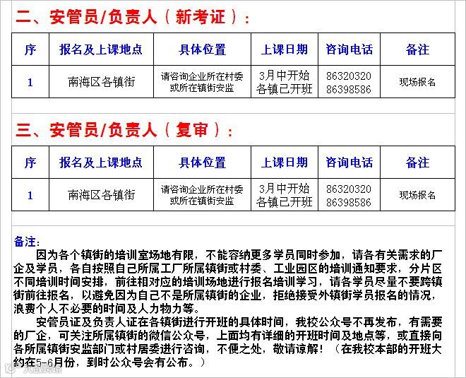 市、区及各镇街安监局微信公众号,请关注了解各镇的培训信息,以及各镇街有关不同的监管要求、通知事项等!