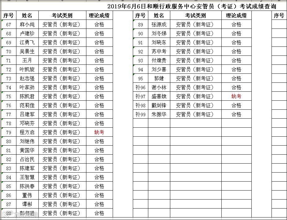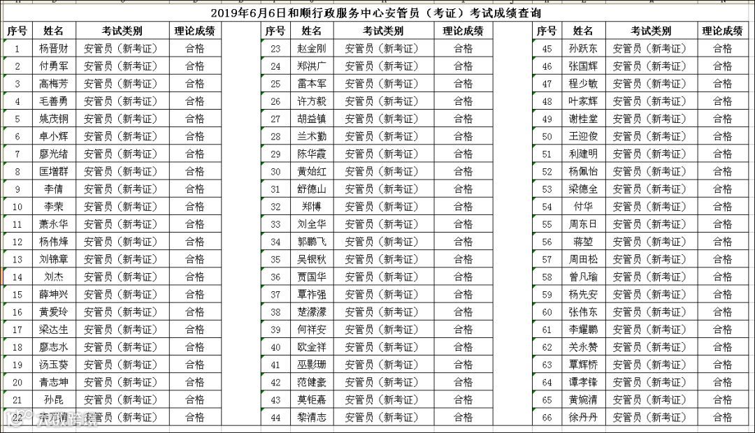 2019.06.06和顺行政服务中心安管员(考证)考试成绩查询