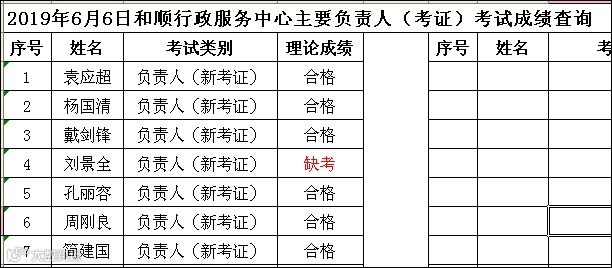 2019.06.06和顺行政服务中心主要负责人(考证)考试成绩查询