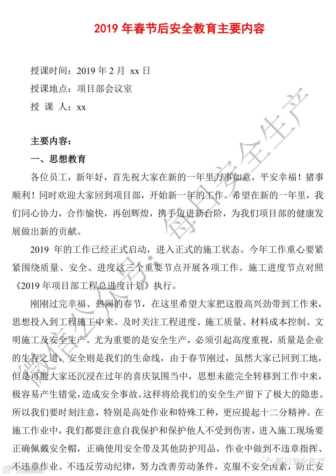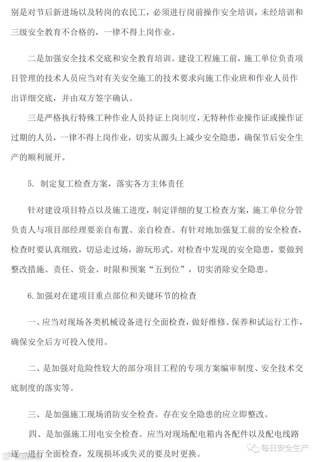 保证节后安全复工复产