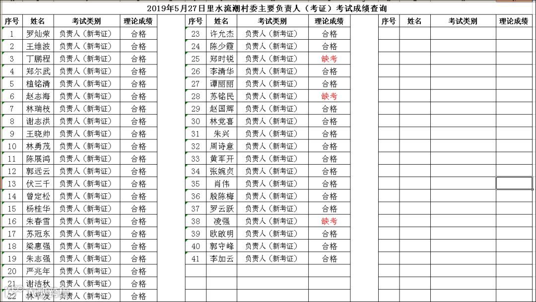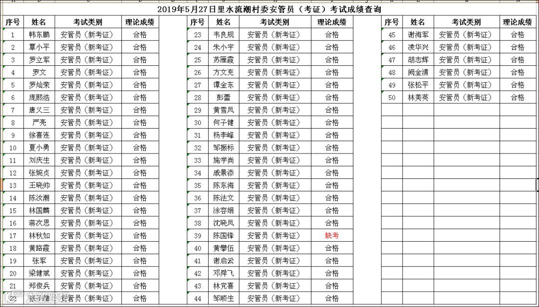 2019.05.27里水流潮村委主要负责人(考证)考试成绩查询