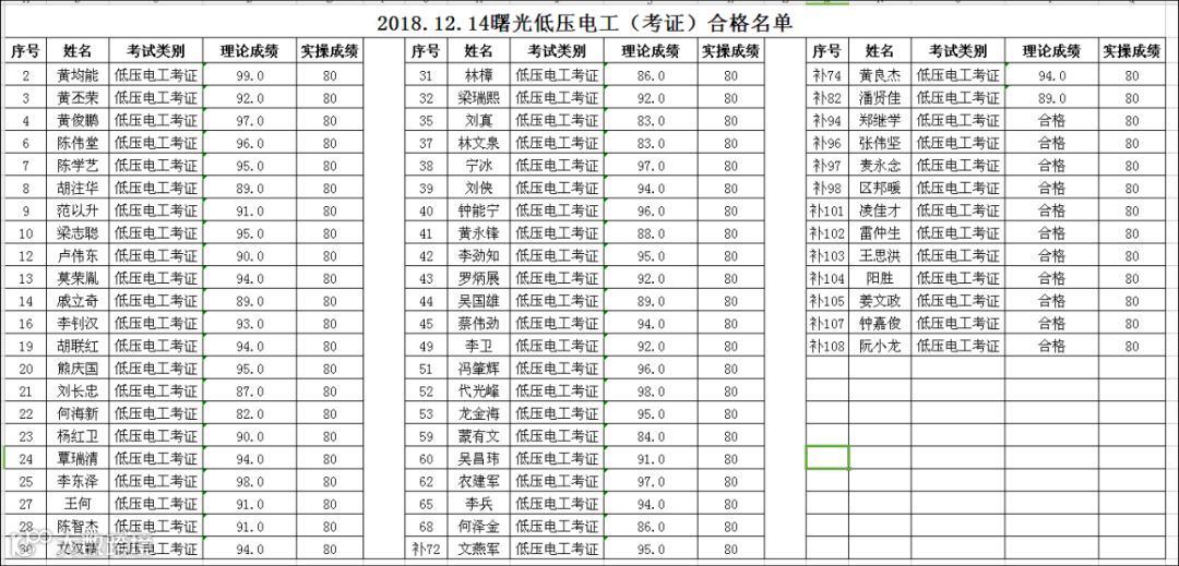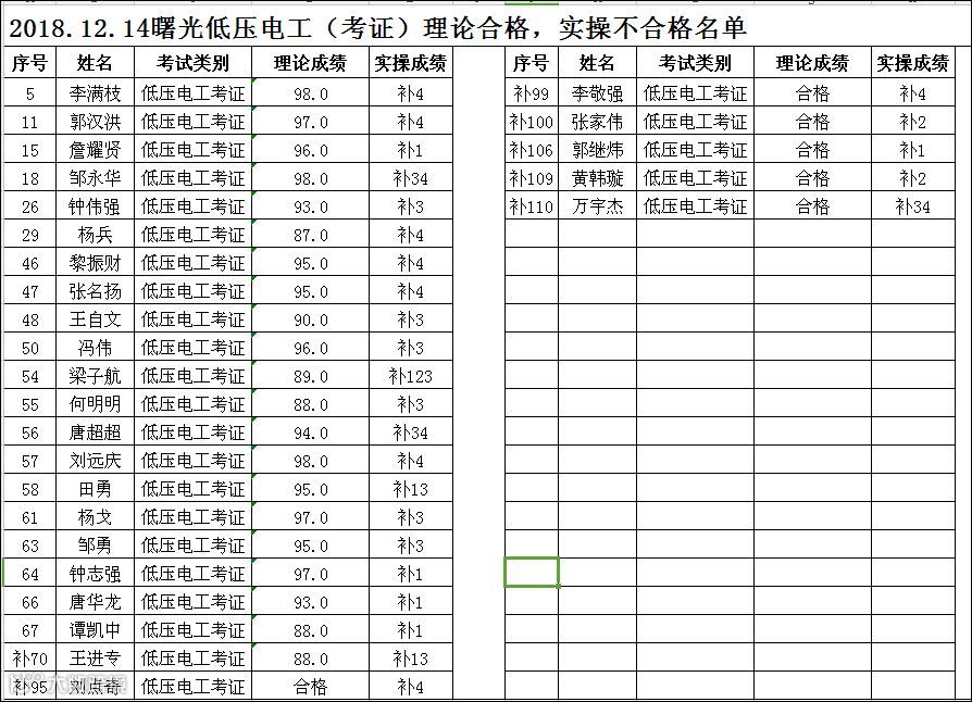 2018.12.14曙光低压电工考证理论合格,但实操不合格名单