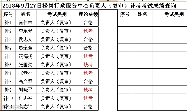 2018.09.27松岗行政服务中心负责人(复审)考试成绩查询
