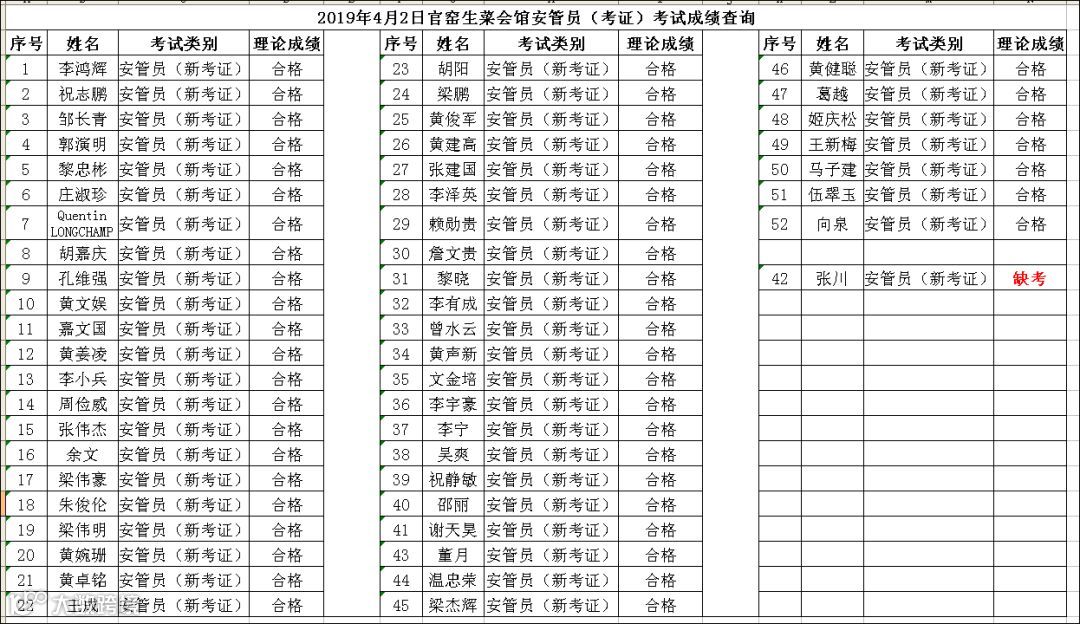 2019.04.02官窑生菜会馆安管员(考证)考试成绩查询