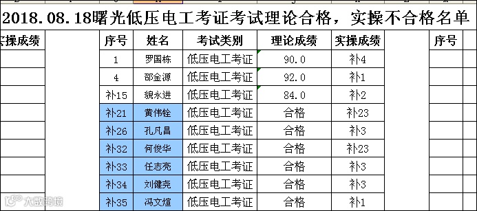 2018.08.18曙光低压电工(考证)考试理论合格,但实操不合格名单