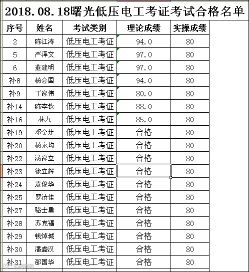 2018.08.18曙光低压电工(考证)考试合格名单