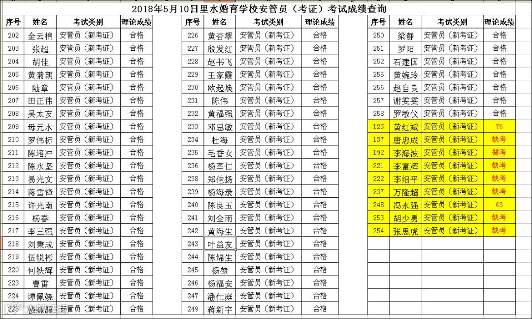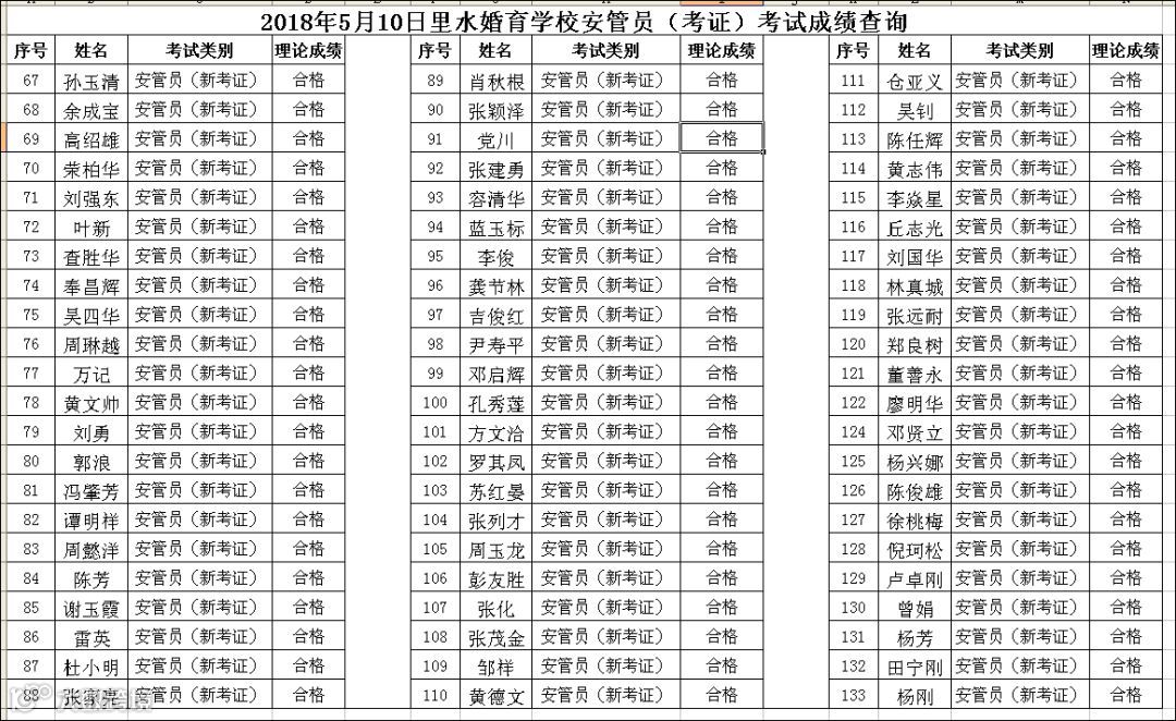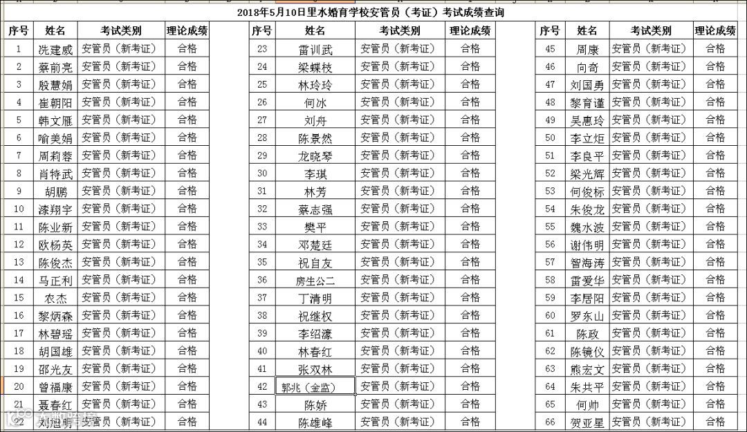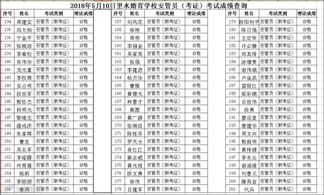 导读:2018.05.10里水婚育学校安管员(考证)考试成绩查询
