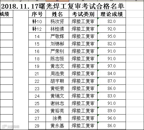 导读:2018.11.17曙光学校焊工(复审)考试合格名单