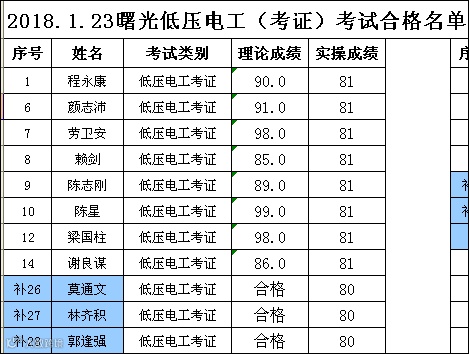 导读:2018.1.23曙光低压电工(考证)考试合格名单