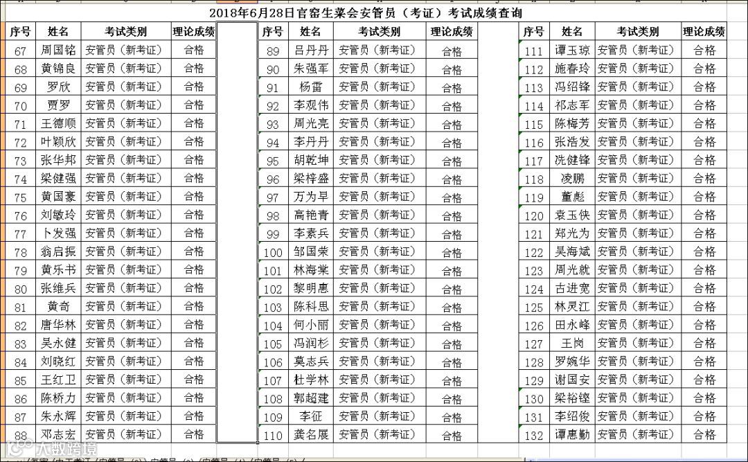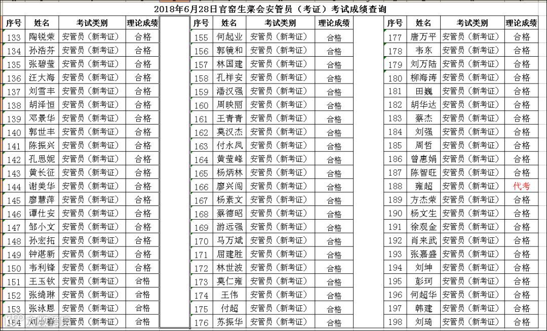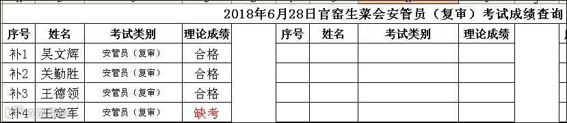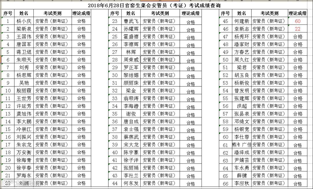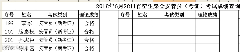 2018.06.28官窑生菜会安管员(考证)+安管员(复审)考试成绩查询