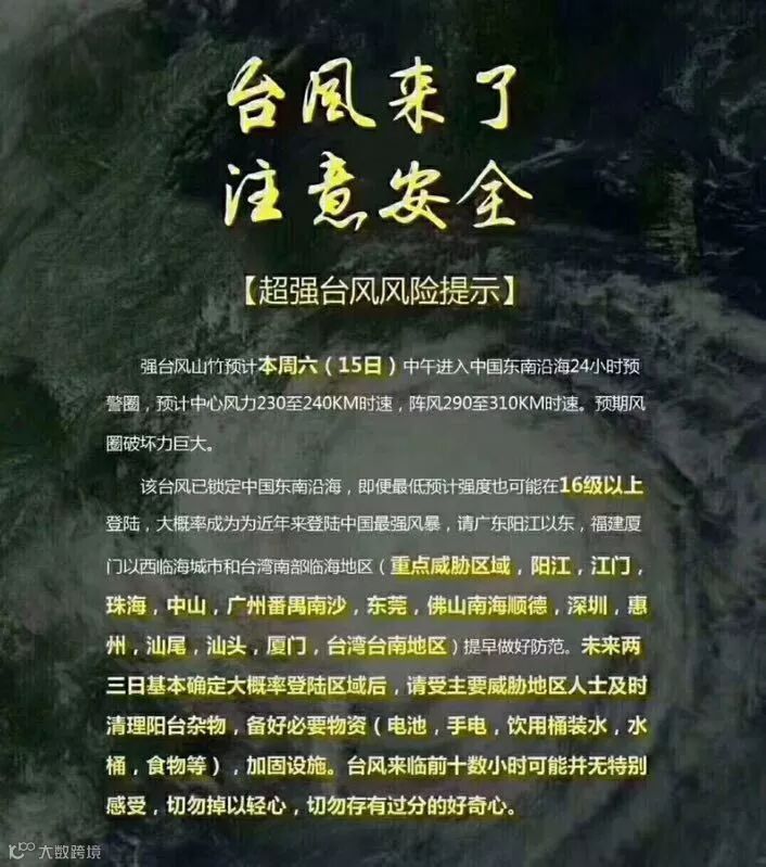 请各企业密切留意气象部门相关气象预警动态,加强与当地有关部门联系沟通,根据台风“山竹”及暴雨最新预报,及时启动应急预案和响应。