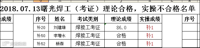 2018.07.13曙光焊工(考证)考试理论合格,实操不合格名单