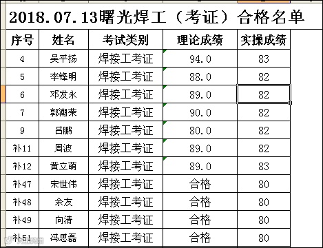 2018.07.13曙光焊工(考证)考试合格名单