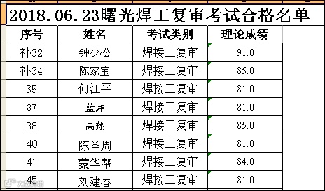 导读:2018.06.23曙光焊工(复审)考试合格名单