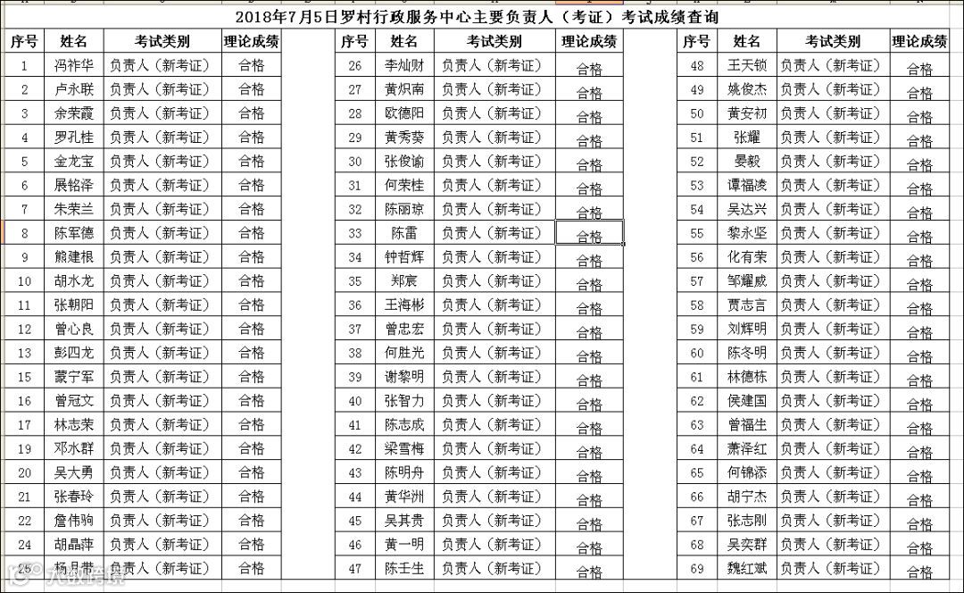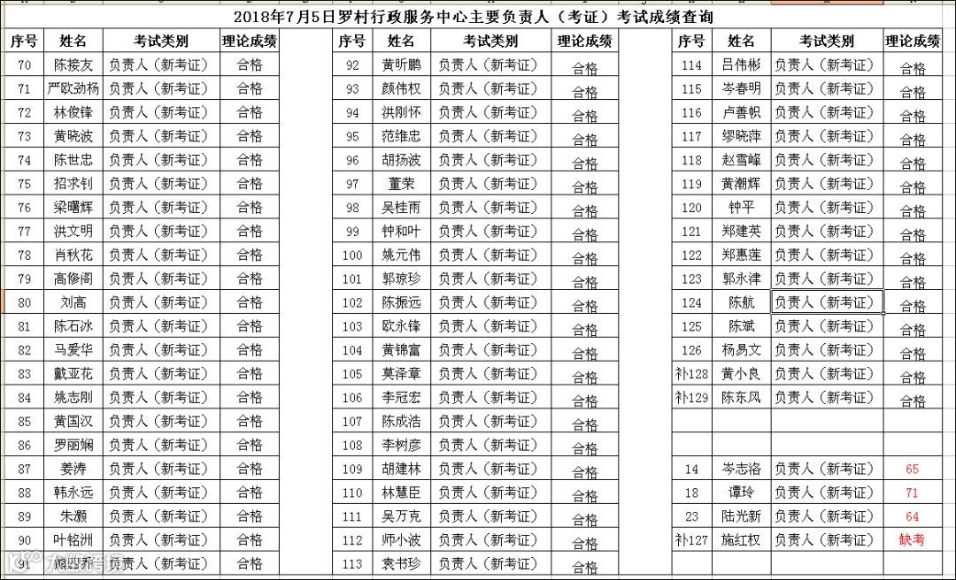 2018.07.05罗村行政服务中心主要负责人(考证)考试成绩查询
