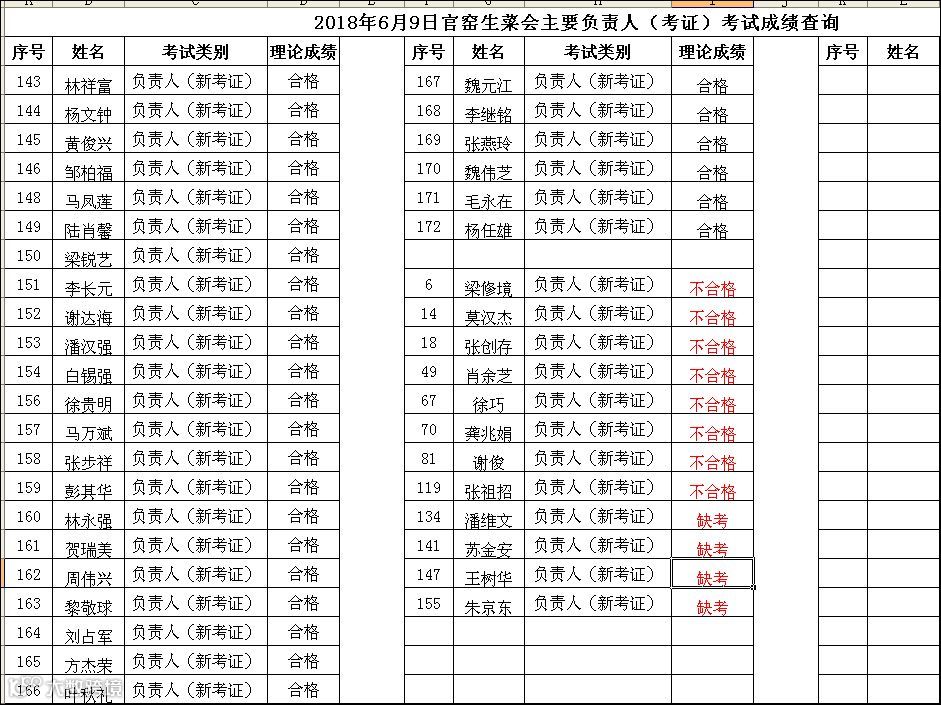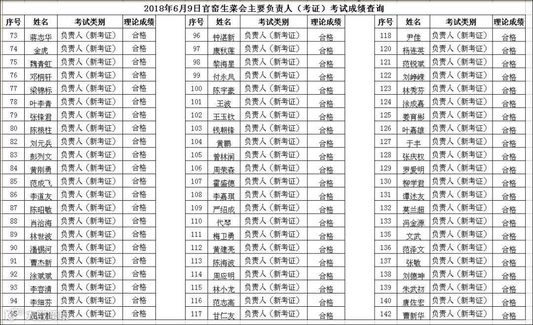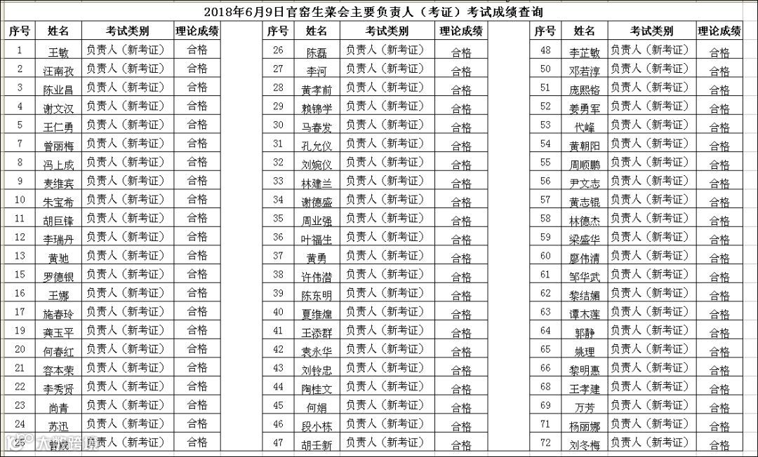 2018.06.09官窑生菜会主要负责人(考证)考试成绩查询