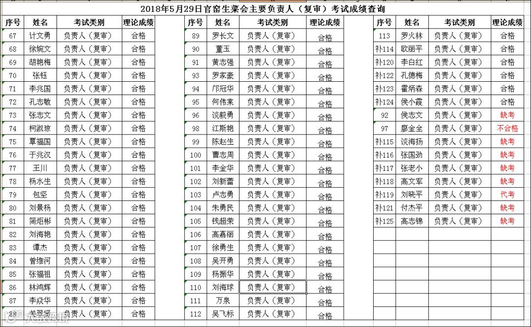 2018.05.29官窑生菜会主要负责人(复审)考试成绩查询